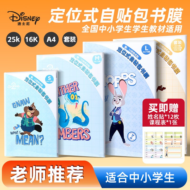 迪士尼(Disney)书皮包书皮自粘小学生文具书皮保护套a4透明防水防污书套16k定位式包书膜25k 疯狂动物城A77085-ZL