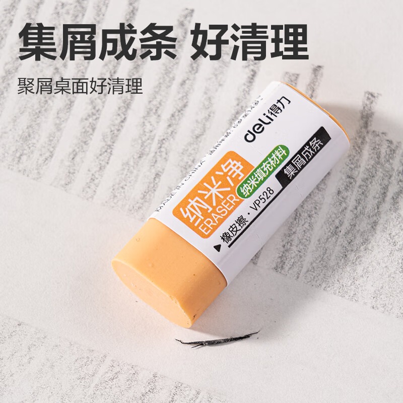 得力(deli)纳米净橡皮擦 易擦少屑 不易留痕学生橡皮擦 单块装 VP195 大号 颜色随机