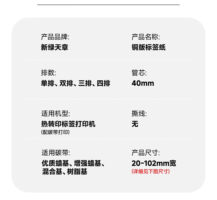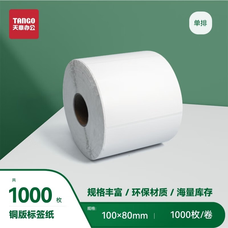 天章 (TANGO)新绿天章铜版纸不干胶条码标签打印纸 碳带标签打印机纸物流货物条码标签纸 单排100x80x1000枚/卷