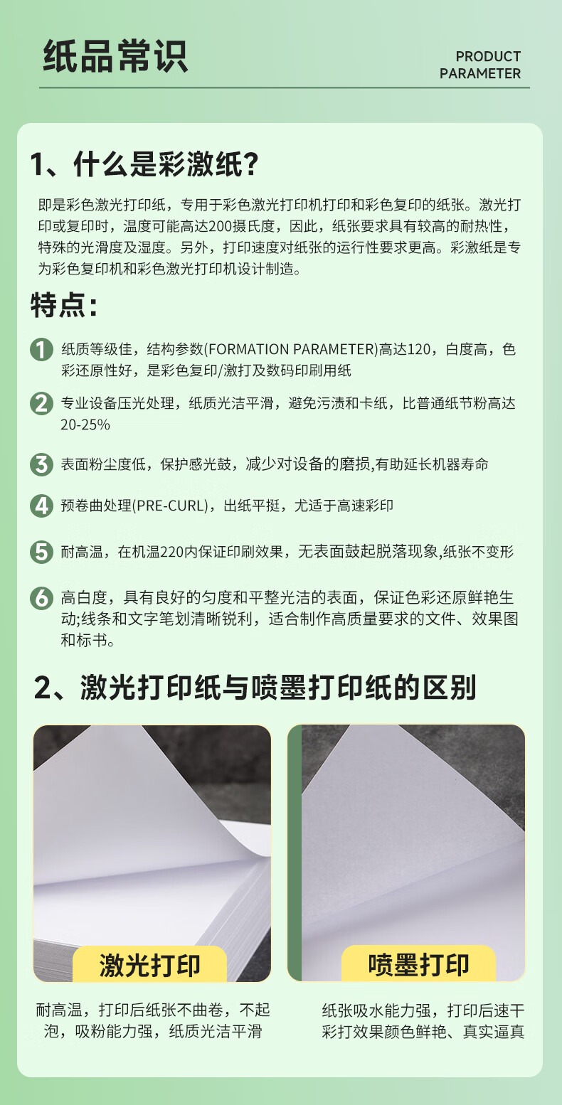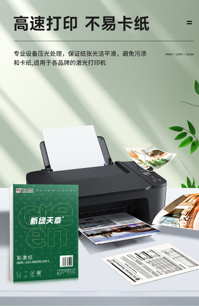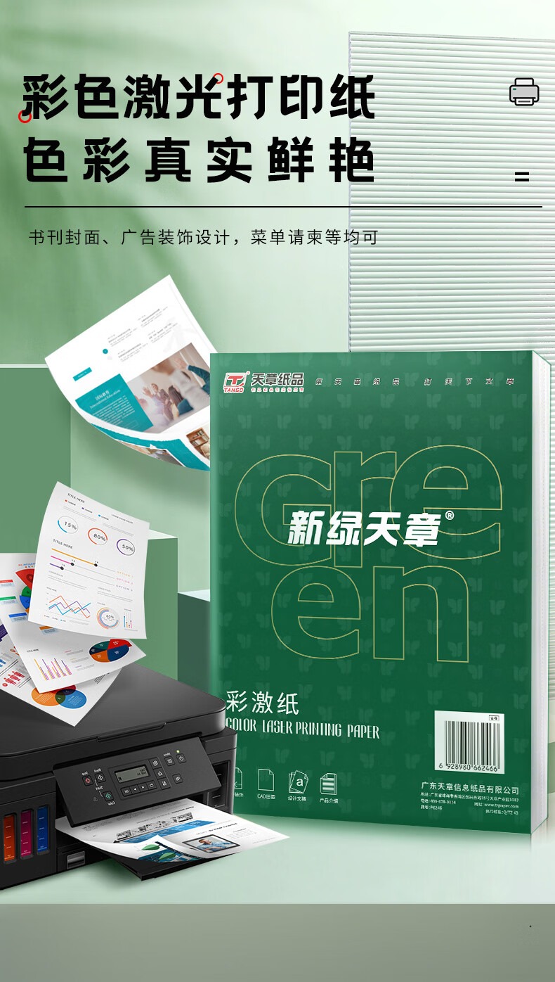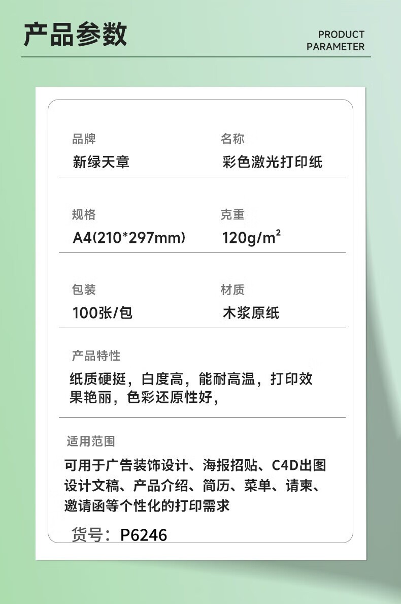 天章 (TANGO) 新绿天章 120gA4彩激纸加厚数码彩印彩色激光打印纸书刊封面菜单打印广告装饰设计100张/盒 P6246