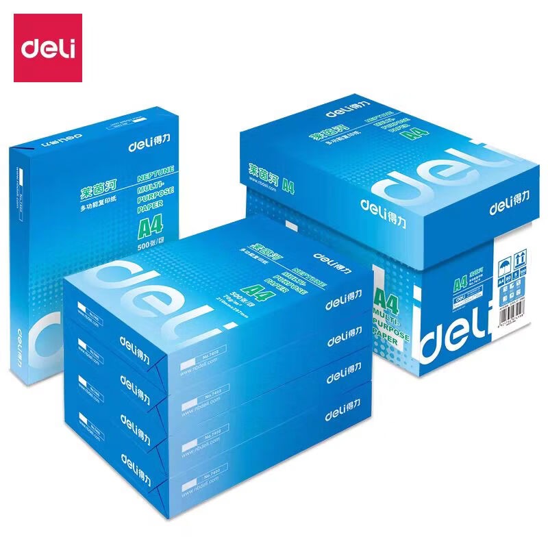 得力莱茵河A4纸,80g复印纸,办公用纸,双面打印纸,A4白纸,高克重打印纸,学生草稿纸,整箱5包打印纸,2500张