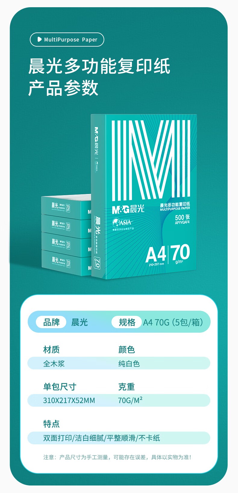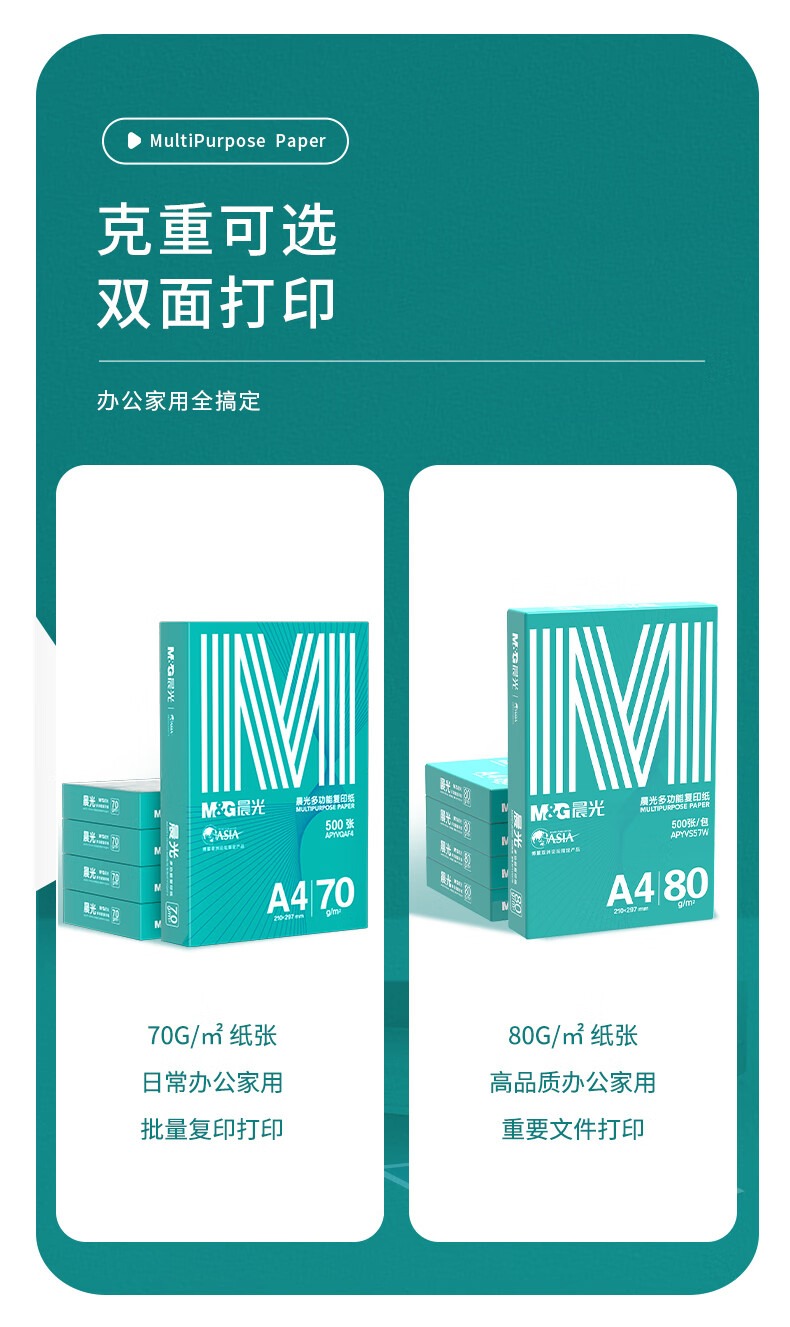 晨光(M&G)绿晨光 A4 70g 多功能双面打印纸 500张/包 8包/箱(整箱4000张) APYVQAF5