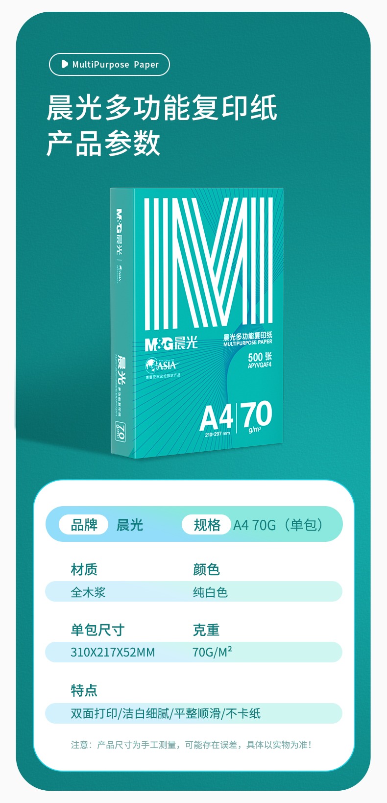 晨光(M&G)绿晨光 A4 70g多功能双面打印纸复印纸 500张/包 单包装 双面畅打 APYVQAF4