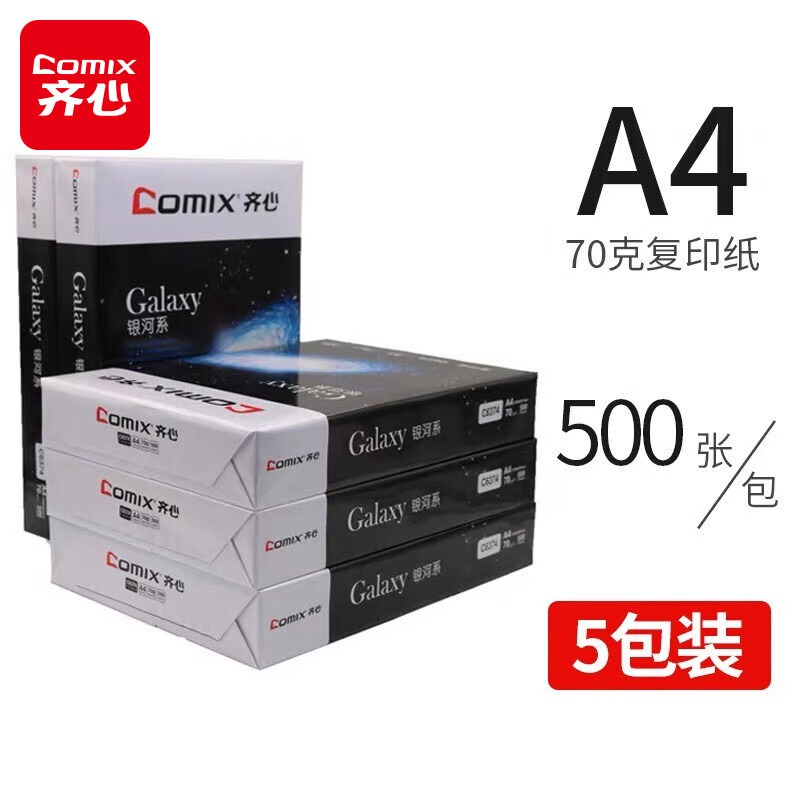 齐心(comix) A4打印纸整箱 70g双面加厚复印纸白纸办公用纸 5包/箱(2500张) 银河系 整箱5包 共2500张