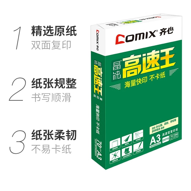 齐心(comix) A4打印纸整箱 70g双面加厚复印纸白纸办公用纸 5包/箱(2500张) 高速王70g 整箱5包 共2500张C4774-5