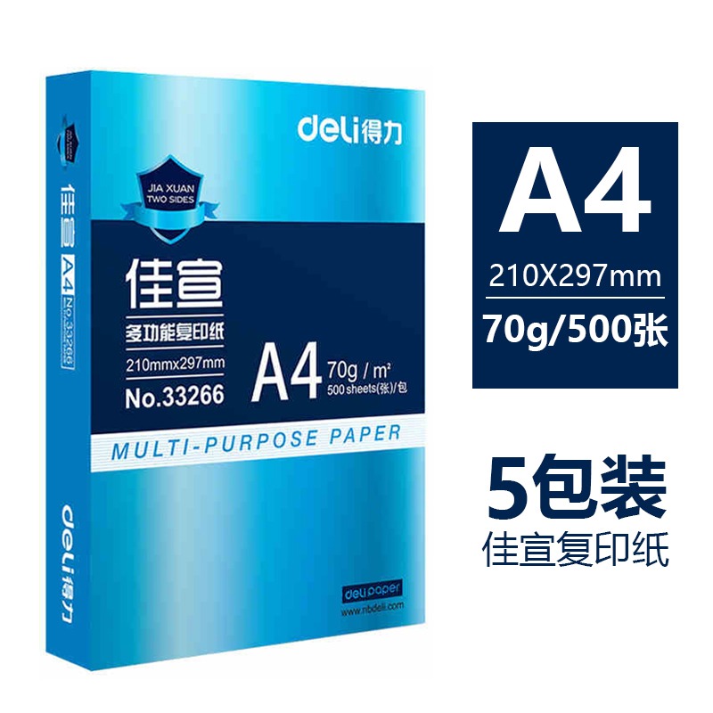 得力复印纸A4纸打印纸佳宣单包财务办公用品a4打印白纸草稿纸高档加厚复印纸书彩打纸 得力佳宣70g整箱2500张