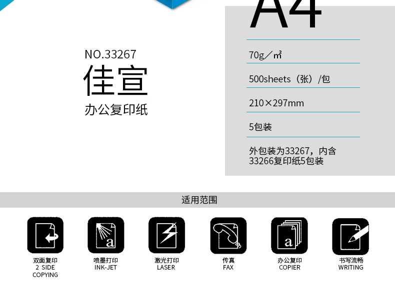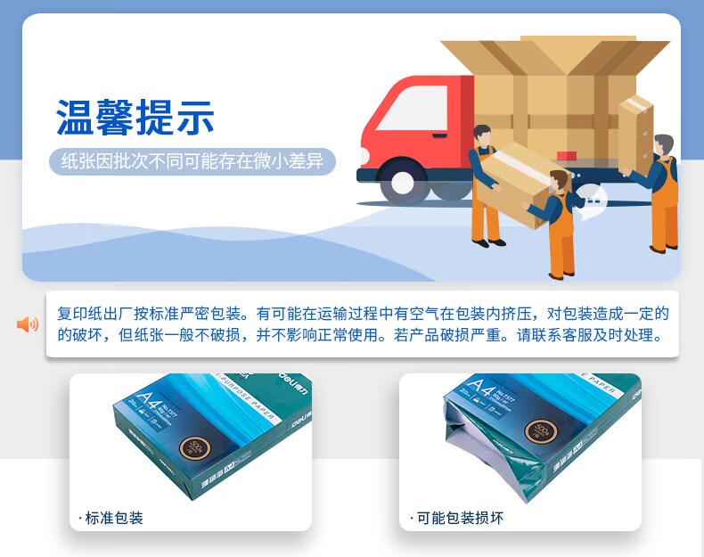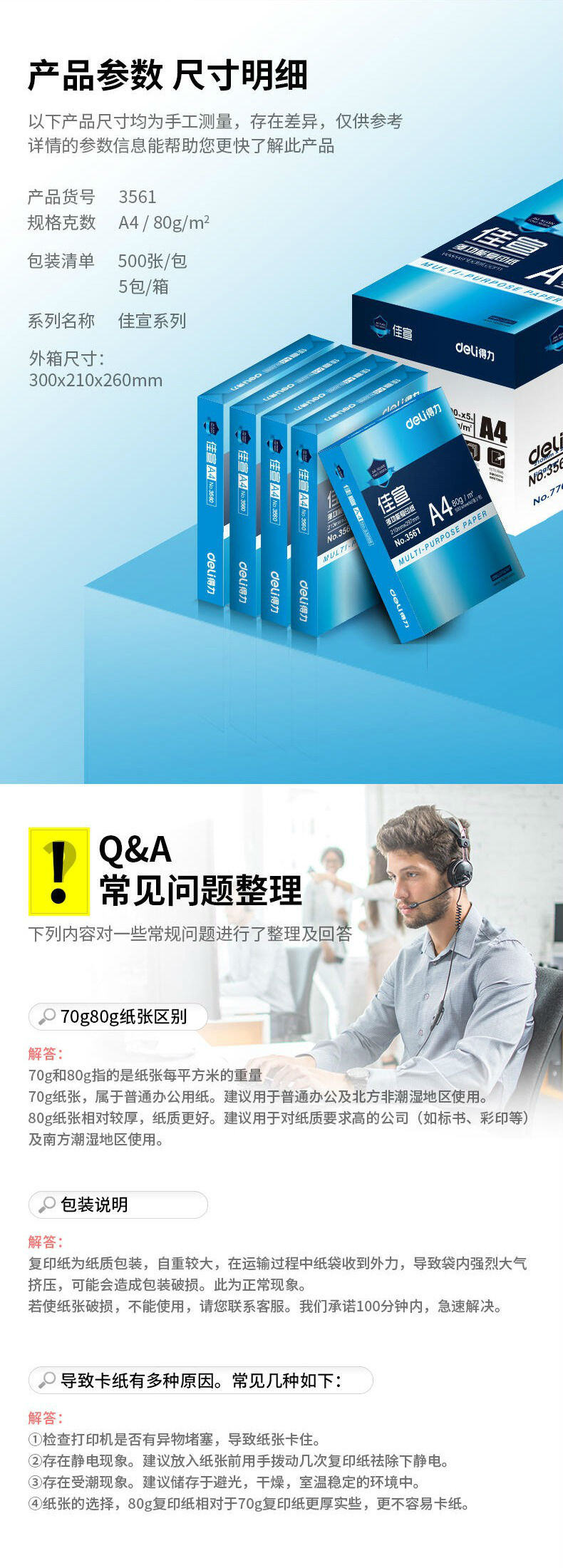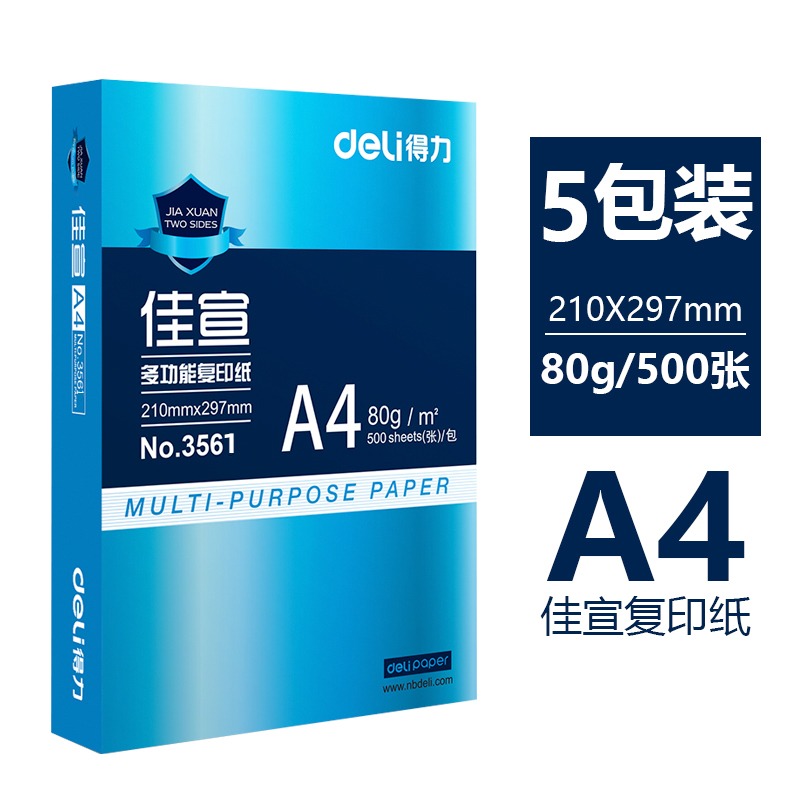得力复印纸A4纸打印纸佳宣单包财务办公用品a4打印白纸草稿纸高档加厚复印纸书彩打纸 得力佳宣80g整箱2500张