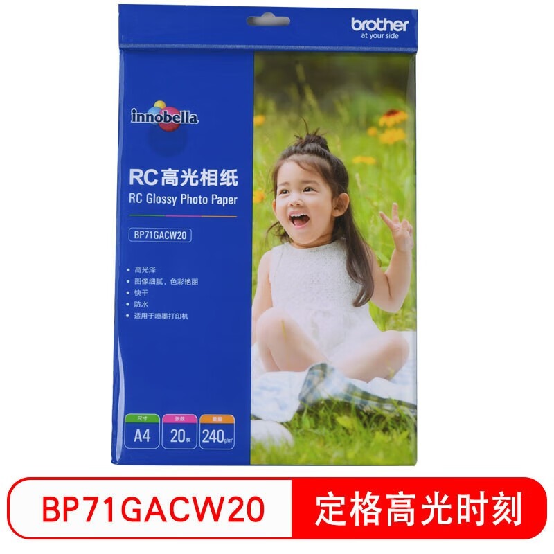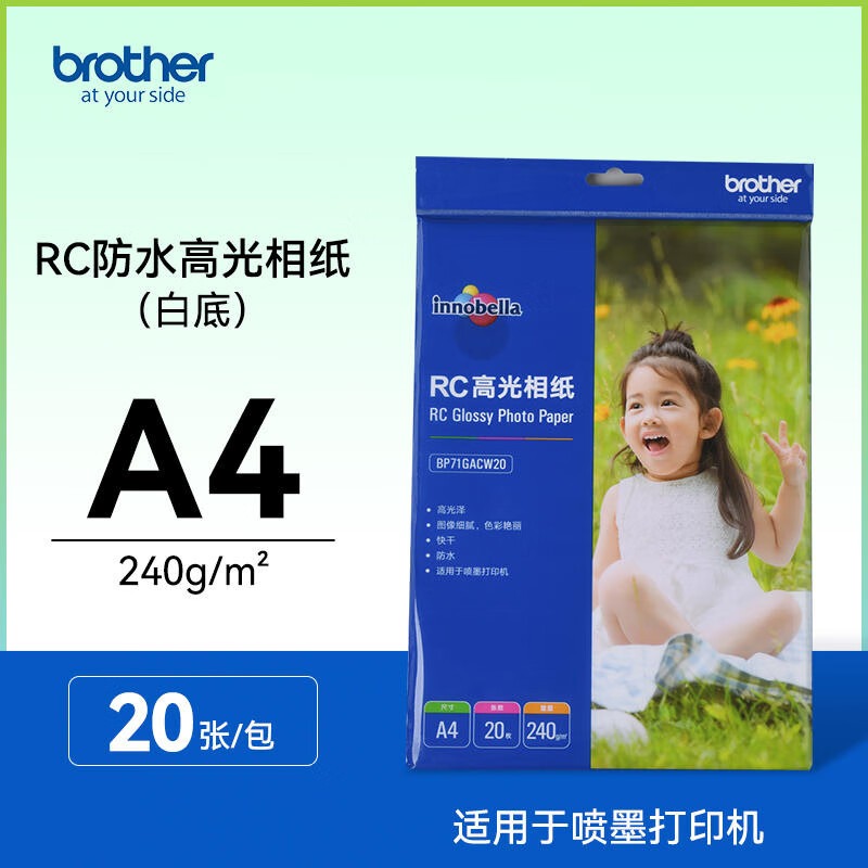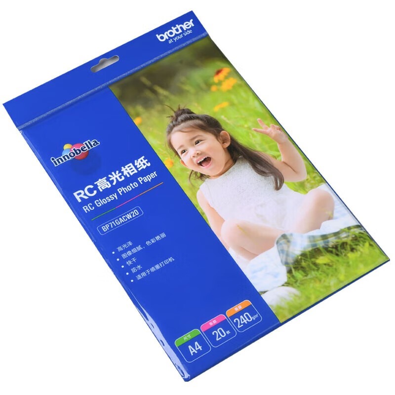 兄弟(brother)RC高光相纸6寸光面240克100张20张喷墨打印相纸相片纸影楼照片 RC相纸 240g A4(20张/包)