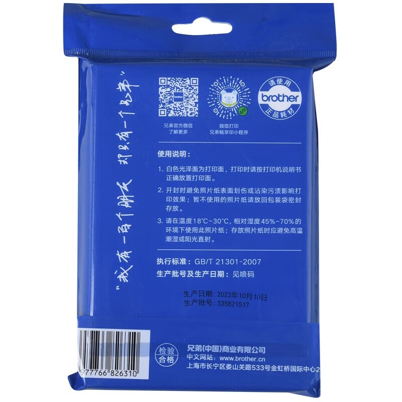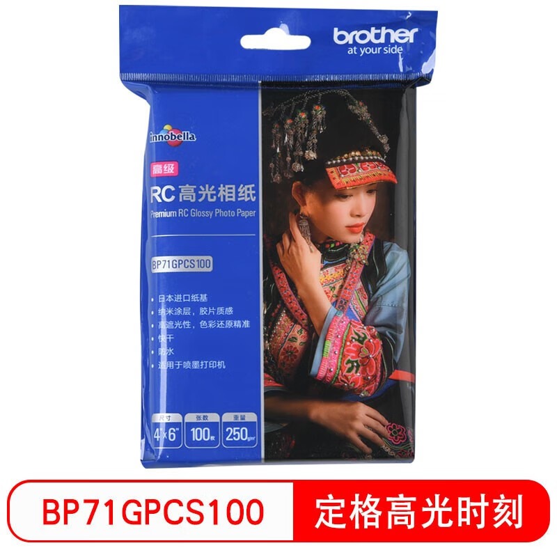 兄弟(brother)RC高光相纸6寸光面240克100张20张喷墨打印相纸相片纸影楼照片 高级RC相纸250g 6寸(100张/包)