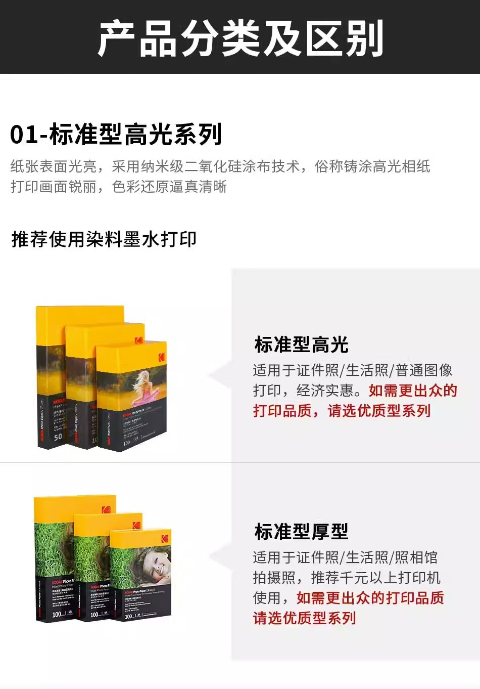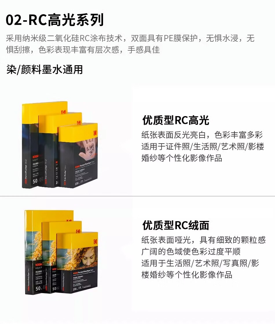 KODAK【开学推荐】柯达家用型高光绒面相纸打印机相片纸彩色照片纸喷墨打印相纸RC高光像纸照相纸a6相纸 5寸-柯达200克标准型高光100张
