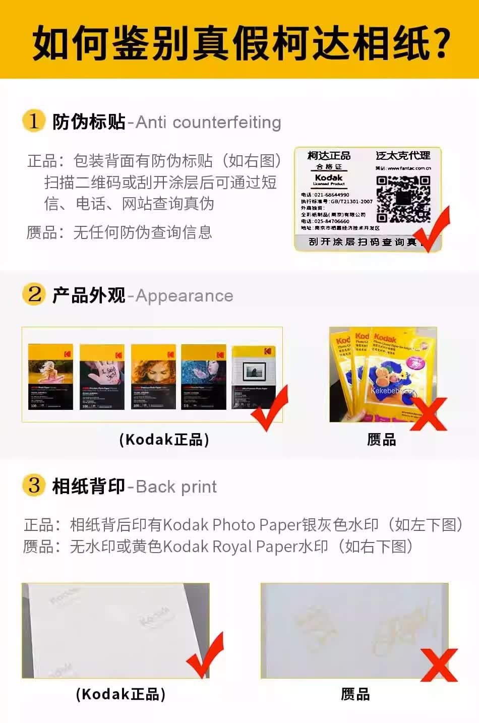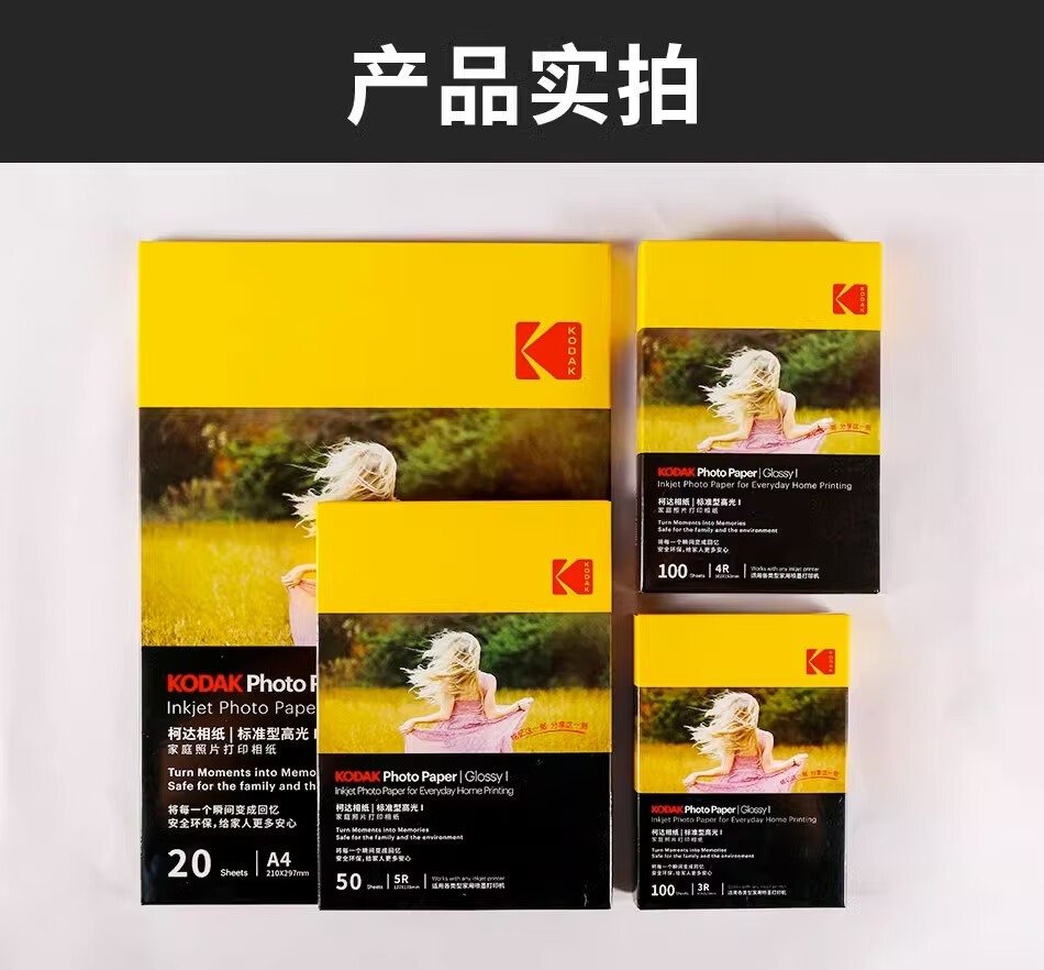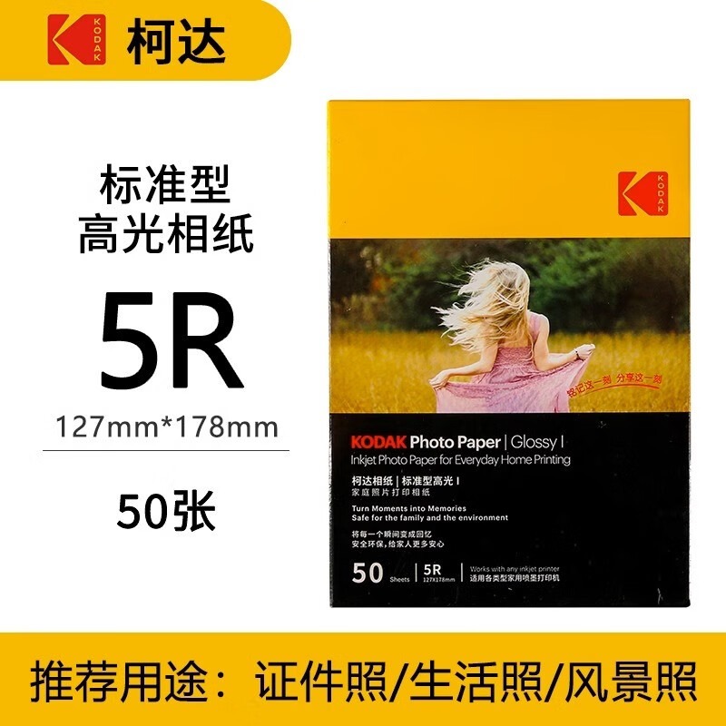 KODAK【开学推荐】柯达家用型高光绒面相纸打印机相片纸彩色照片纸喷墨打印相纸RC高光像纸照相纸a6相纸 7寸-柯达200克标准型高光50张