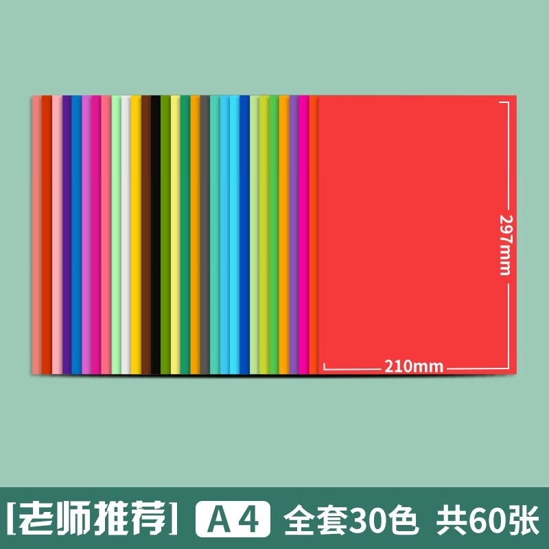 得力卡纸 硬纸a4手工硬卡纸彩色卡纸 小学生儿童幼儿园剪纸制作材料学生美术画画用 A4 30色 共60张 加厚180g