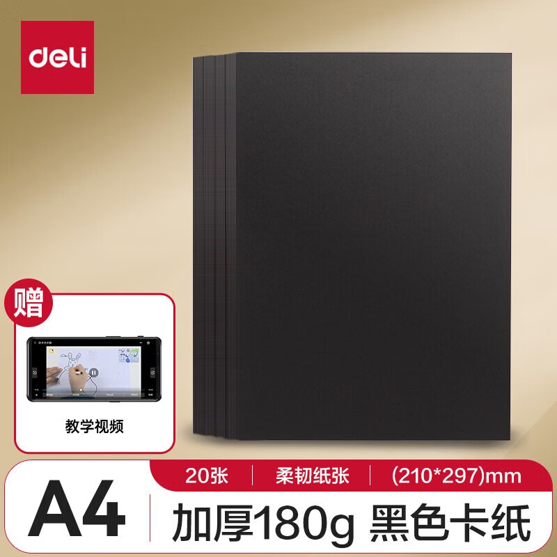 得力硬卡纸 白色加厚卡纸 幼儿园儿童小学生黑色手工纸 DIY贺卡纸剪纸 A4 黑卡纸【20张 180g】