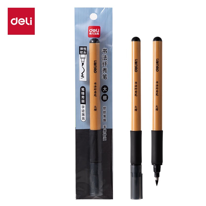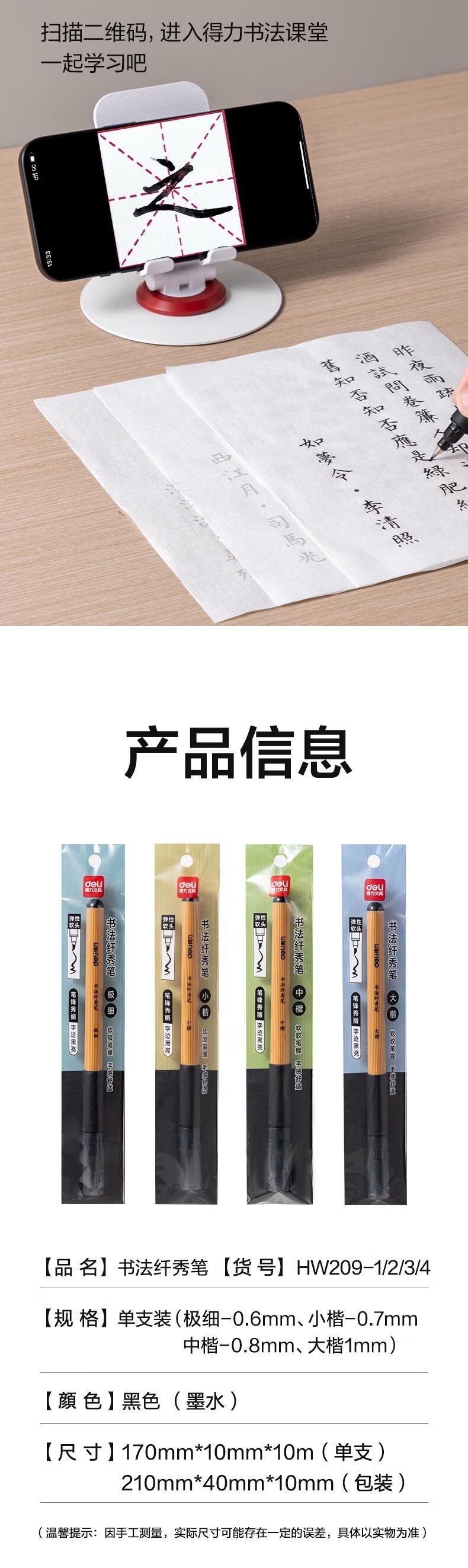 得力(deli)大楷秀丽笔毛笔勾线练字笔 黑色软头学生成人签字书法练习请柬笔 1支/袋 HW209-1