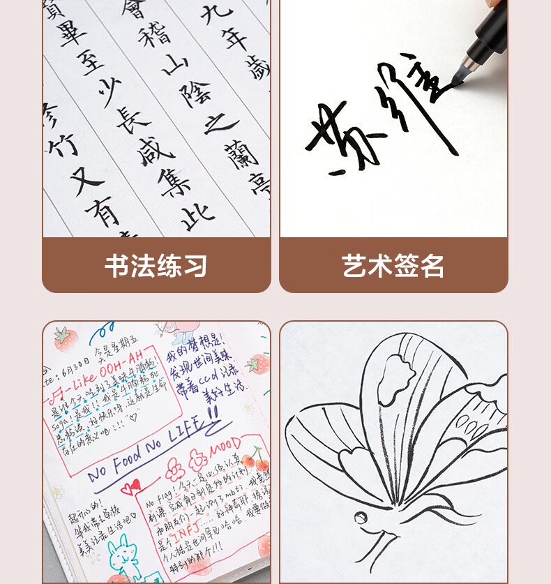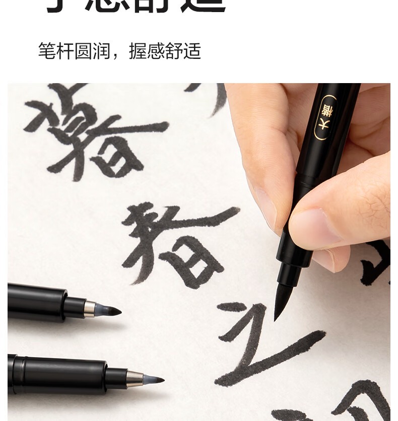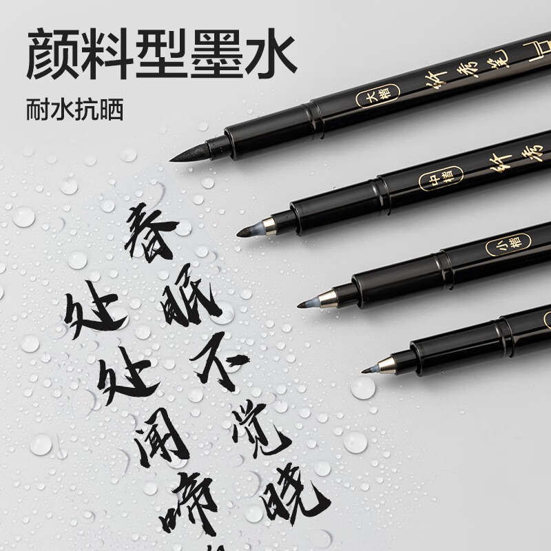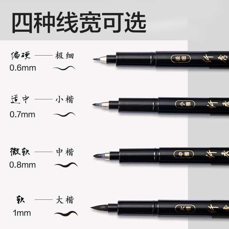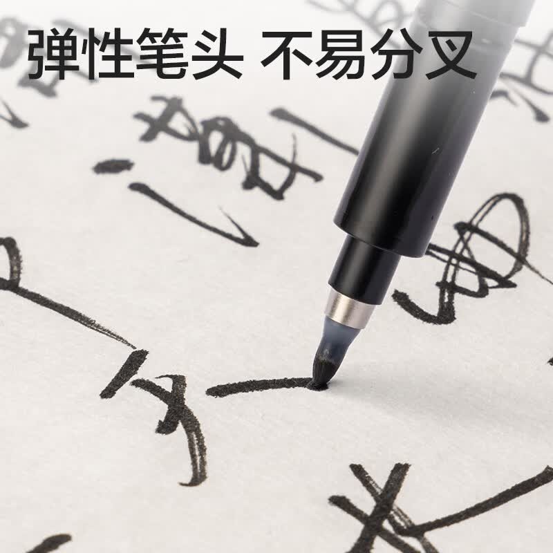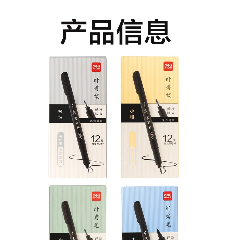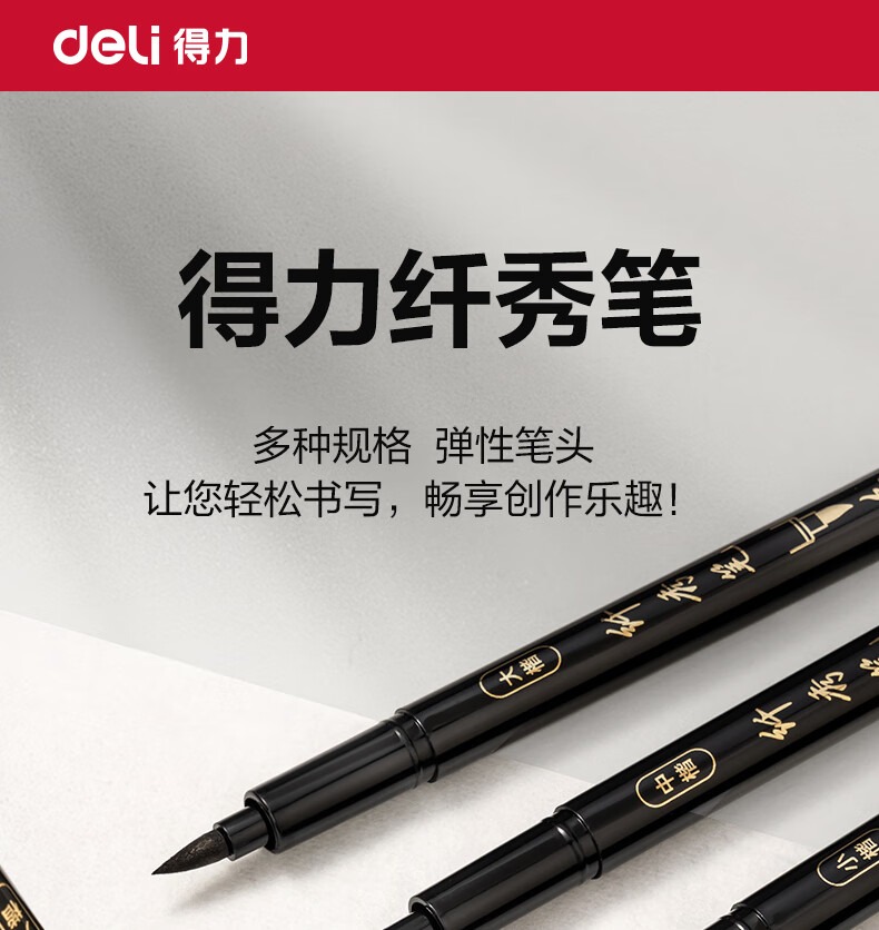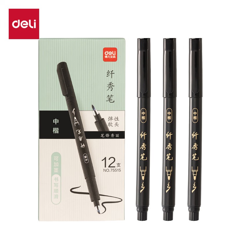 得力(deli)中楷秀丽笔毛笔勾线练字笔 软头学生成人签字书法练习请柬笔 黑色 12支/盒 开学礼物75515