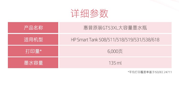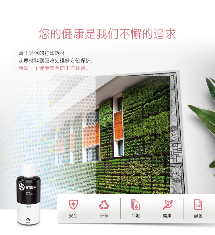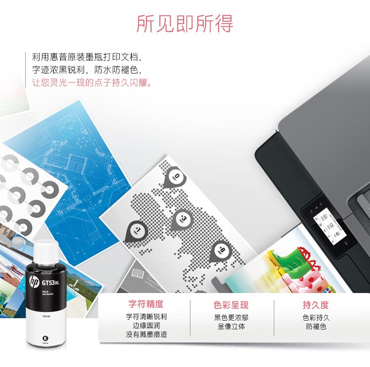 惠普(HP)GT51/53原装黑色墨水 适用hp tank310/410/5810/5820/418/411/419/518/519打印机 135ml