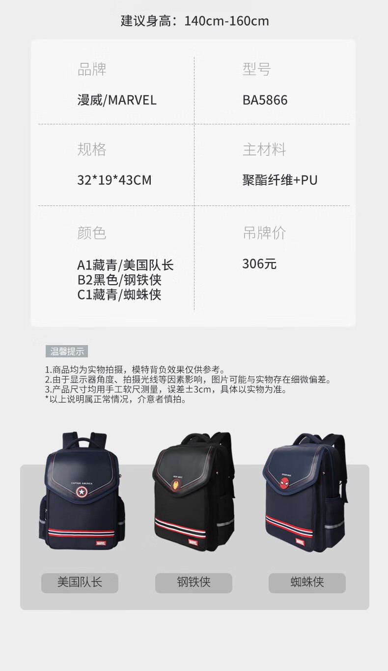 迪士尼(Disney)书包小学生1-3年级护脊减负高颜值户外出游大容量男女背包双肩包